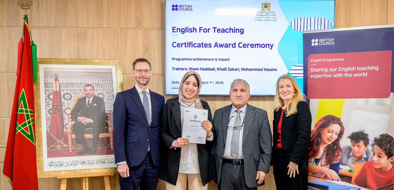 بحضور سعادة سفير المملكة المتحدة بالمغرب، والسيد الكاتب العام لوزارة التربية الوطنية والتعليم الأولي والرياضة، احتفى المجلس الثقافي البريطاني بالمغرب يوم فاتح أبريل الجاري في الرباط بنجاح برنامج التكوين«English for Teaching» (EfT) ( الانجليزية من أجل التدريس ) وقد تم خلال هذا الحفل تكريم أساتذة اللغة الإنجليزية من جهتي الرباط والدار البيضاء، في محطة هامة ضمن الجهود المتواصلة لتعزيز تعليم اللغة الإنجليزية بالمغرب.