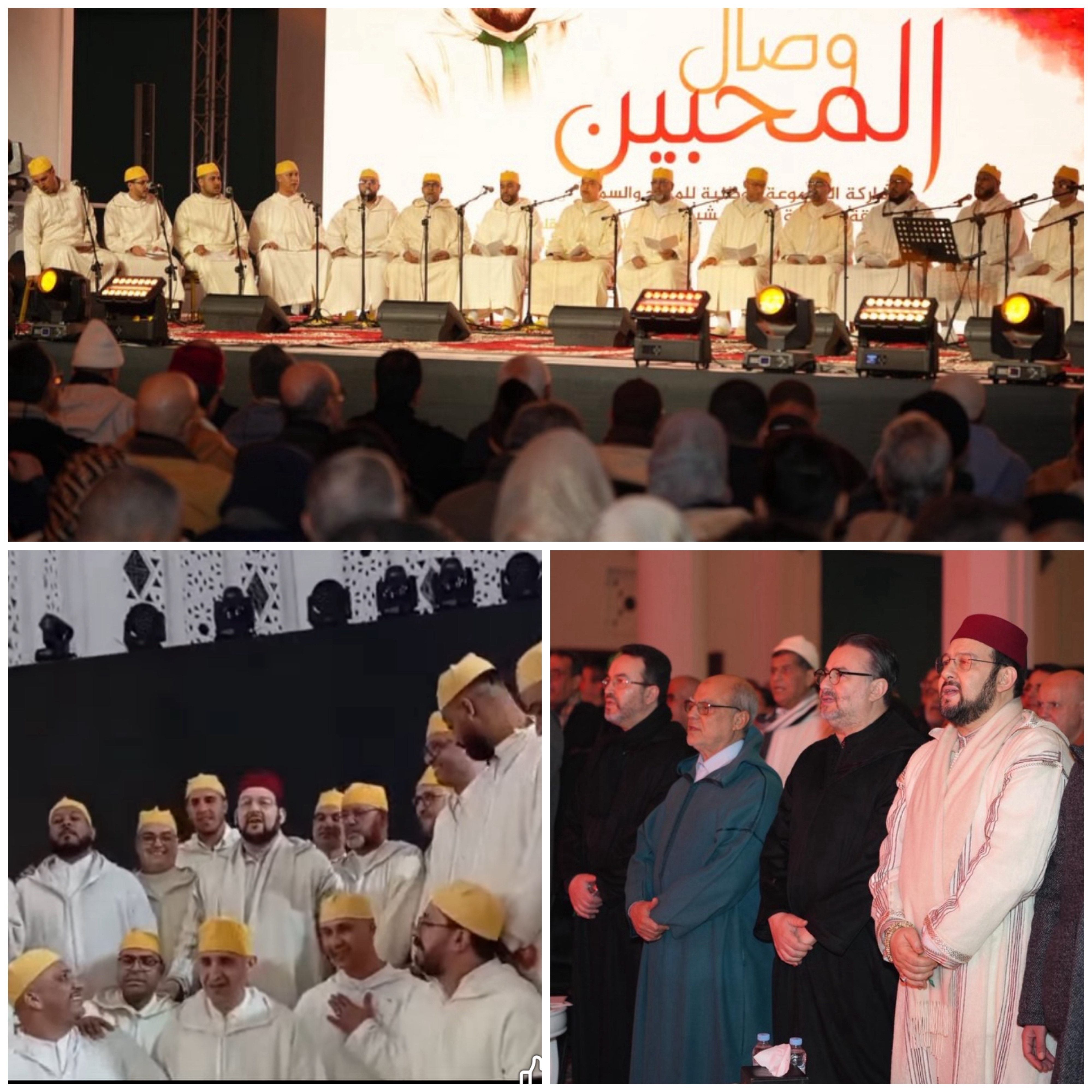 وعرفت الليلة تقديم باقة مختارة من القصائد و الابتهالات الروحية في تجل فني يعكس أصالةالتراث المغربي في فن السماع والمديح ، و يجسد عمق المدرسة الصوفية في ترسيخ قيمالمحبة و التزكية و السلام ، شنفت بها أسماع الحاضرين كل المجموعة الوطنية للمديحللطريقة القادرية البودشيشية، والمنشد محمد المهدي الهدهود، وفرقة النفوس الراقية ، وهوما لقي تفاعلا كبيرا من طرف الجمهور ، في أجواء اختلط فيها عبق الذكر بصدق المحبة .