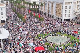 وهي المسيرة التي استقطبت الآلاف من النشطاء الحقوقيين والجمعويين من مختلف فعاليات المجتمع المدني، يمثلون هيئات حقوقية وسياسية ونقابية، ومواطنون من مختلف جهات المملكة، حاملين الأعلام الفلسطينية ومرددين شعارات تطالب بايقاف الحرب.