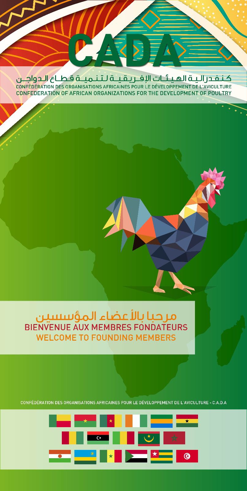 La Confédération des Organisations Africaines pour le Développement de l’Aviculture (C.A.D.A) œuvrera pour soutenir la filière avicole dans ses pays membres par l'échange d'expériences et la coopération dans le but de promouvoir, de développer une aviculture moderne et durable en Afrique, de valoriser les produits avicoles et de contrôler leur qualité pour relever les défis de compétitivité internationale.