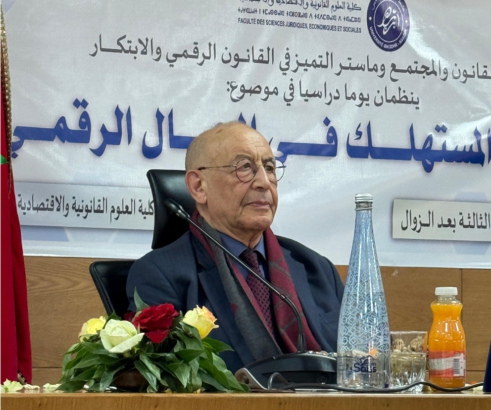 نظّمت كلية العلوم القانونية والاقتصادية والاجتماعية بجامعة ابن زهر بأكادير، في إطار أنشطة مختبر القانون والمجتمع وماستر التميز في القانون الرقمي والابتكار، يومًا دراسيًا حول موضوع “حماية المستهلك في المجال الرقمي”، وذلك يوم السبت 02 يناير 2026 بقاعة الندوات برحاب الكلية.