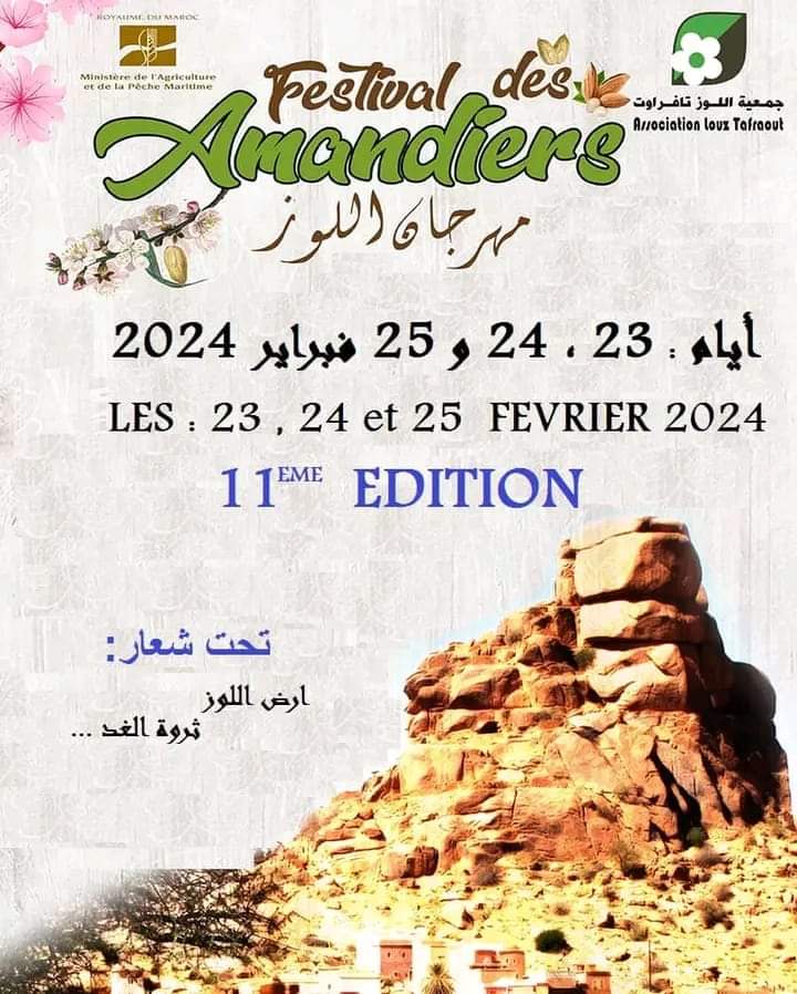 تحتضن مدينة تافراوت الدورة الحادية عشر لمهرجان اللو تحت شعاره الدائم أرض اللوز.. ثروة الغد... " وذلك أيام 23 24 و 25 فبراير 2024 وذلك بشراكة مع وزارة الفلاحة والصيد البحري عمالة تزنيت وجماعة تافراوت، إلى جانب
