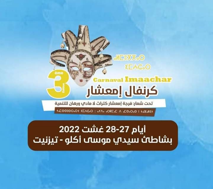 إدارة كرنفال إمعشار بأكلو ارتأت أن تكون هذه النسخة فرصة مواثية لتقريب الفرجة للمواطنين والمصطافين وتعريفهم بالموروث الثقافي الممتد لأزمنة خلت، لهذا وضعت برنامجا يفتتح بندوة علمية وثقافية حول موضوع “قيم التعايش وتدبير المشترك الإنساني في طقوس إمعشار” من تأطير ذ. عبد العزيز ياسين والأستاذ ذ. إبراهيم الطاهري وتسيير الناشط على مواقع التواصل الإجتماعي الأستاذ سعيد رحم، إضافة إلى فقرات استعراضية “ديفيلي إمعشار” على طول إفريز شاطئ سيدي موسى أكلو الذي يعتبر من أحسن الشواطئ على مستوى المملكة والذي توج بشارة اللواء الأزرق للمرة الحادية عشر تواليا، فعاليات الكرنفال ستنظم أيام 27 و 28 غشت 2022 بشاطئ سيدي موسى أكلو بإقليم تيزنيت.