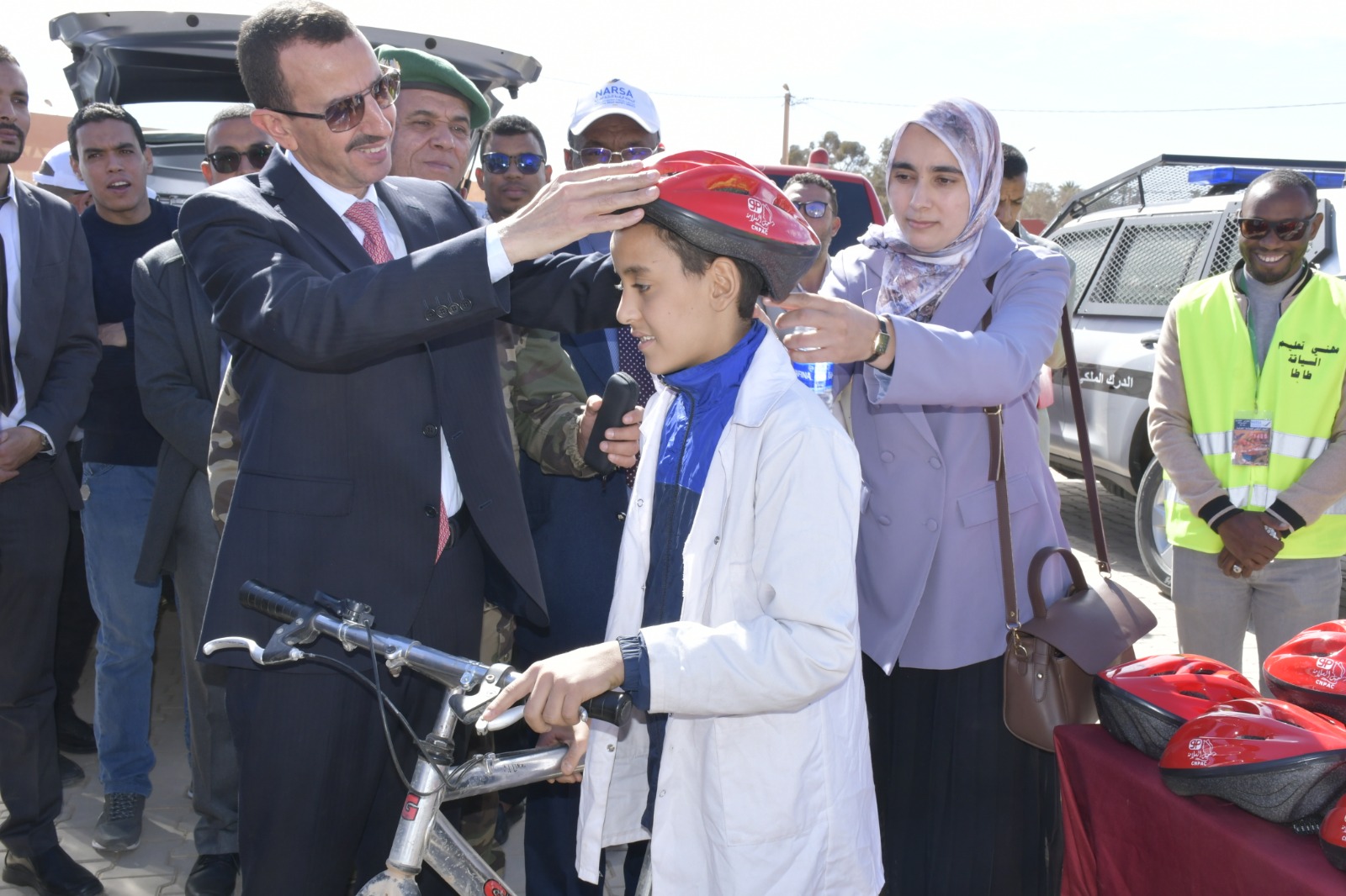 *توزيع الخوذات الواقية على مستعملي الدراجات النارية والهوائية