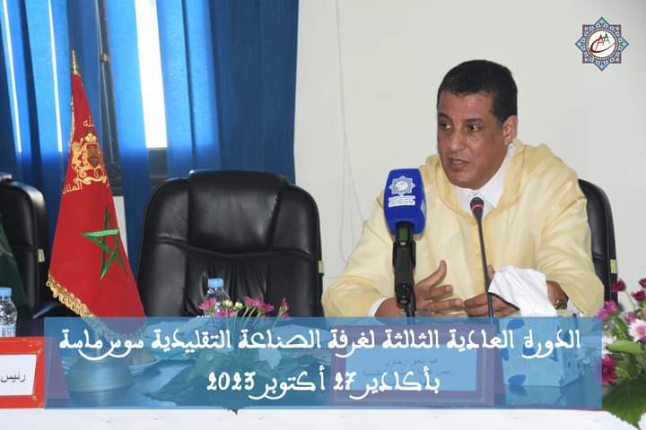 عقدت الجمعية العامة لغرفة الصناعة التقليدية لجهة سوس ماسة ، دورة اكتوبر العادية برسم سنة 2023، يوم الجمعة 27 أكتوبر 2023، بقاعة الاجتماعات بمقر الغرفة بأكادير ، على الساعة العاشرة صباحا . هذا وقد ترأس أشغال هذه الدورة السيد عبد الحق ارخاوي رئيس الغرفة، بحضور السید ممثل المدیرية الجهوي للصناعة التقلیدیة باكادير ، و السيد المدير الإقليمي للصناعة التقليدية بتيزنيت، و السيد المدير الإقليمي للصناعة التقليدية بتارودانت و السيد نائب رئيس الغرفة الفلاحية لجهة سوس ماسة، و السيد نائب رئيس مجلس جهة سوس ماسة ، والسيد رئيس المنطقة الحضرية بأكادير المركز، والسيد ممثل المديرية الجهوية لمكتب التكوين المهني و إنعاش الشغل لجهة سوس ماسة بأكادير؛ والسيدات والسادة أعضاء الجمعية العامة للغرفة، و السادة ممثلي العمالات والأقاليم بالجهة.