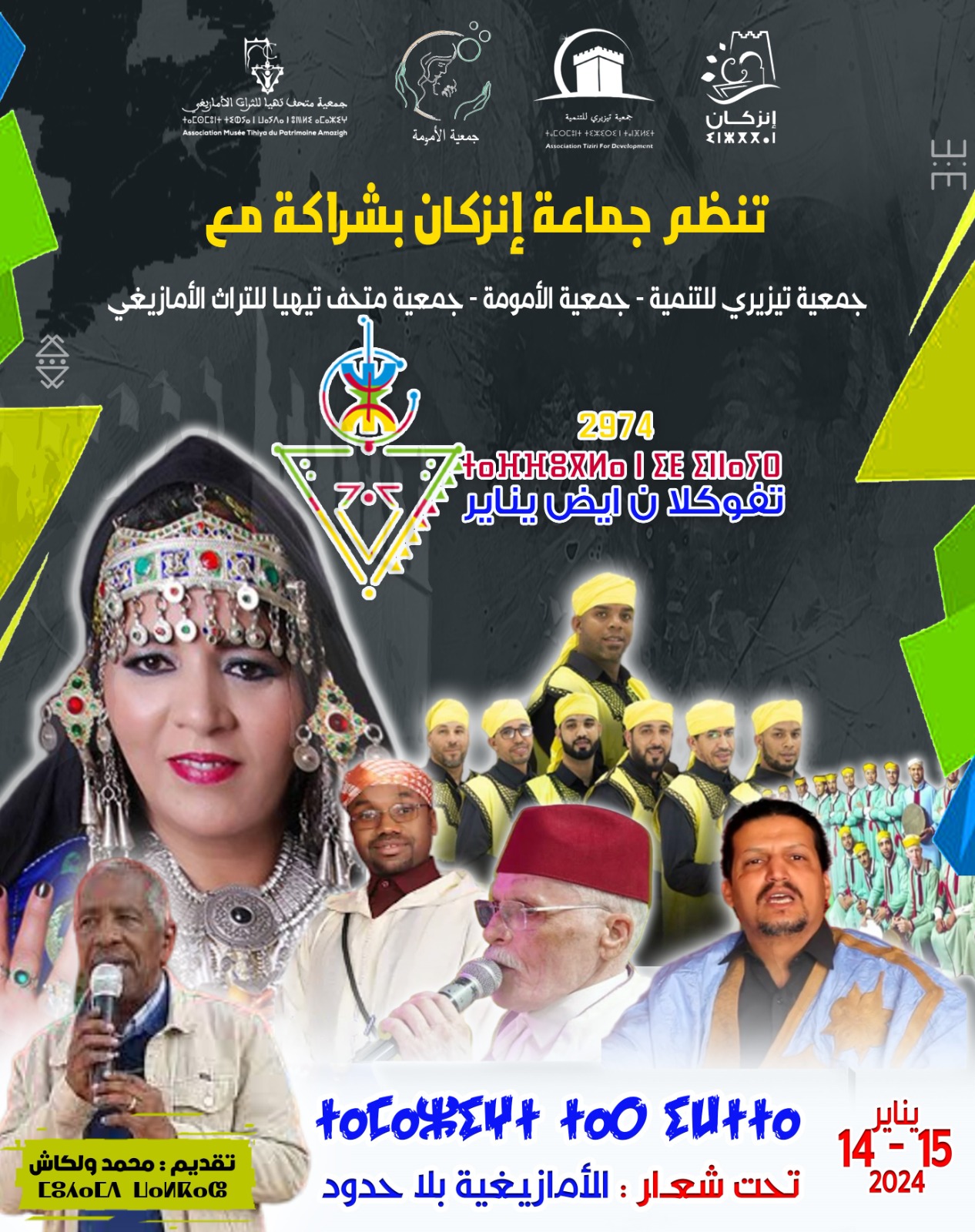 بخلاف الاحتفالات برأس السنة الامازيغية "ايض يناير 2974",والتي تسابق إلى تخليدها العديد من الجمعيات الامازيغية في قاعات الحفلات ويستدعى إليها نخبة من الساكنة ،فإن جماعة انزكان بشراكة مع جمعيات تيزيري للتنمية و الأمومة ومتحف تهيا .أبت إلا أن تفتح أبوابها للجميع وتخلد هذا الحدث الامازيغي "تافوكلا ايض يناير " في فضاء أرحب للجميع وبطقوس جد متاصلة في التاريخ الامازيغي ،يربط الوجدان والهوية ،بشكل يصل حاضر الحدث وتطورات الثقافة الامازيغية ومكوناتها الثقافية،مع ما يرمز إليه التخليد للحدث الامازيغي.،وذلك يومي 14 و15 يناير المقبل ،تحت شعار : 'ذاكرة انزكان الحضارية ومعمارها تختزن تراثا امازيغيا فذا ".