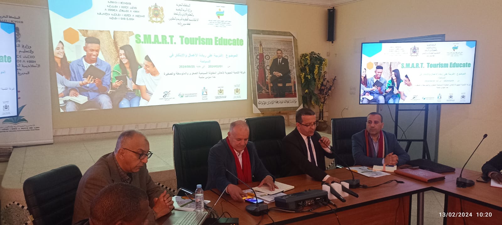 صباح يوم الثلاثاء 13 فبراير 2024 بقاعة الاجتماعات بالمديرية الإقليمية بطاطا أشرف السيد عبد اللطيف أجكرير المدير الاقليمي للأكاديمية الجهوية للتربية والتكوين لجهة سوس ماسة بطاطا، السيد رئيس المركز الجهوي للتوثيق والتنشيط والإنتاج التربوي، السيد رئيس المركز الجهوي للتوجيه بالأكاديمية لجهة سوس ماسة، والسيد مصطفى بيكين الخبير الوطني وممثل شركة التنمية الجهوية لإنعاش المقاولة السياحية الصغرى والمتوسطة والصغيرة جدا بسوس ماسة، بحضور السادة رؤساء المصالح بالمديرية الإقليمية، السيد منسق وحدة الحياة المدرسية، السيد رئيس مكتب التواصل، و السادة مديري مؤسسات التعليم الثانوي التأهيلي والسيدة والسادة مستشاري التوجيه التربوي بالمديرية، على أشغال اللقاء التواصلي حول مسابقة "SMART TOURISM EDUCATE" لريادة الأعمال والابتكار في مجال السياحة لفائدة تلميذات وتلاميذ سلك التعليم الثانوي التأهيلي، والتي تهدف الى تطوير مهارات التلميذات و التلاميذ الريادية، وتوفير الدعم والتأطير المهني من طرف الشركاء والخبراء، والمتخصصين في مجال المقاولات والسياحة والتنمية المستدامة؛ ويأتي هذا اللقاء تنزيلا لبنوذ اتفاقية الشراكة المبرمة بين الاكاديمية الجهوية للتربية والتكوين بجهة سوس ماسة وشركة التنمية الجهوية لإنعاش المقاولة السياحية الصغرى والمتوسطة والصغيرة جدا بسوس ماسة،