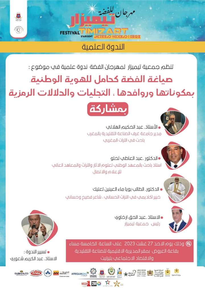 "صياغة الفضة كحامل للهوية الوطنية بمكوناتها وروافدها- التجليات والدلالات الرمزية" ، موضوع الندوة العلمية للنسخة11 لمهرجان تيمزار للفضة، تجسيدا للبعد الثقافي والهوياتي .