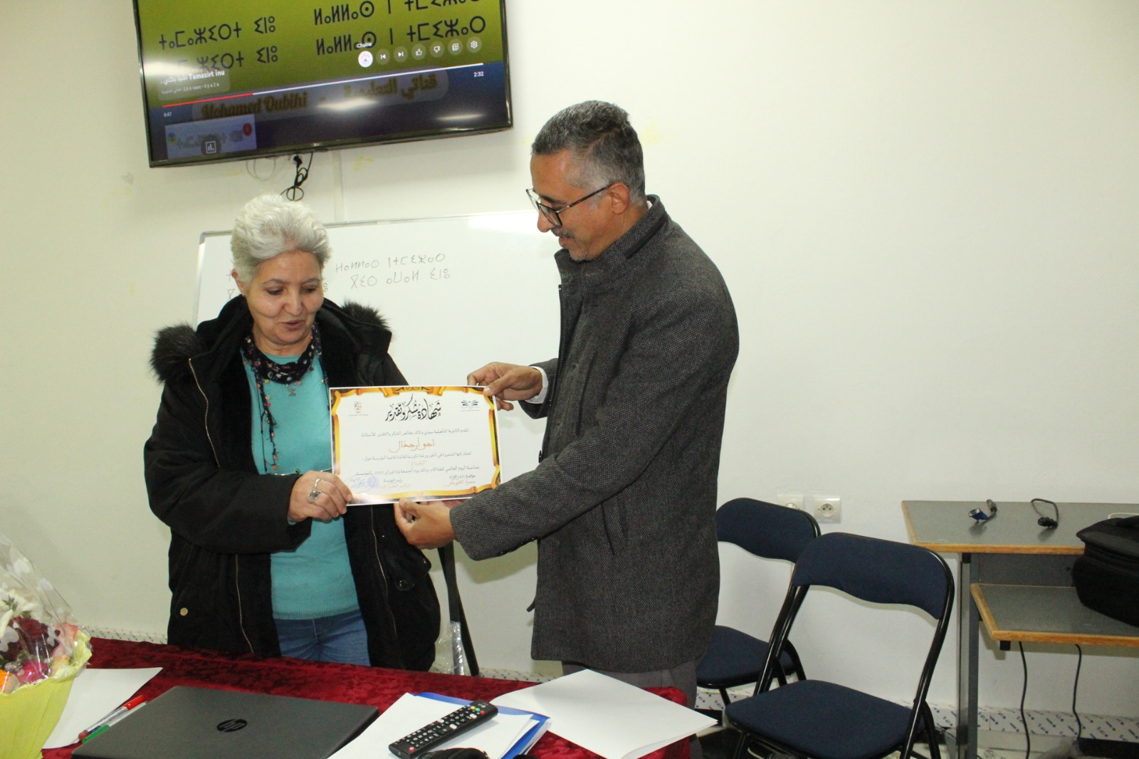 كما تجدر الإشارة إلى أن بعض المستفيدات والمستفيدين من الورشة كانوا على موعد مع تجديد الصلة مع حروف تيفيناغ التي سبق و أن درسوها فيما قبل بأحد مستويات التعليم الابتدائي وبالتالي تجديد اللقاء بأستاذهم للغة الأمازيغية السيد الحسين اهديدوا، الذي كان لحضوره في هذا اللقاء التربوي وقع جميل في نفوس تلامذته سابقا.