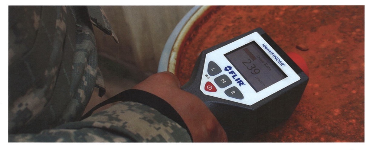 • الأجهزة في موقع الحادث: وتستخدم في موقع الحادث أجهزة للكشف عن المواد النووية الإشعاعية ومنها جهاز النانوريدر (nanoRAIDER) وجهاز الجايجر Geiger Mueller (GM) Detectors، وجهاز لقياس الأشعة الممتصة ( Dose Rate Meter) وجهاز فالكون 5000 للتعرف على نظير المشع (Falcon 5000® Portable HPGe-Based Radionuclide Identifier) وكذلك يمكن استخدام أجهزة ORTEC للكشف عن المصادر النووية المشعة من خلال رصد النيوترونات، (ORTEC’s neutron and fission detection system)