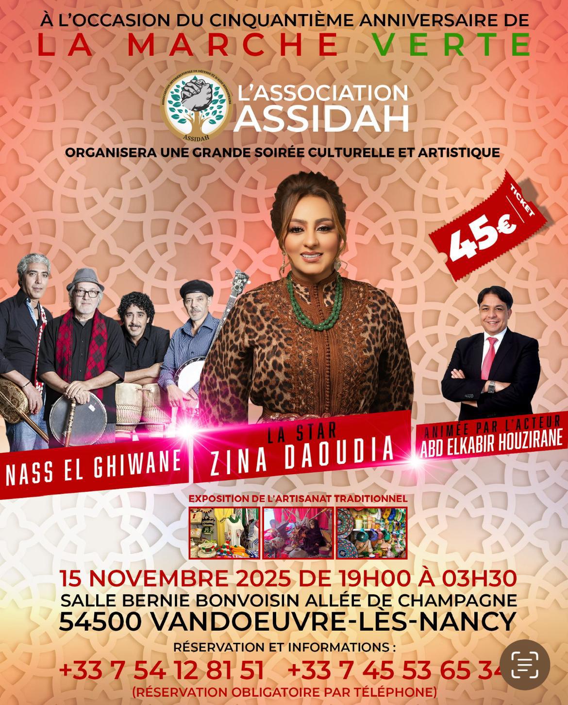 Maglor - Le samedi 15 novembre 2025, Vandœuvre-lès-Nancy accueillera un événement d’envergure à l’occasion du cinquantenaire de la Marche Verte. Organisée par l’Association Assidah, la soirée se déroulera à la salle Bernie Bonvoisin, de 19 h à 3 h 30 du matin.