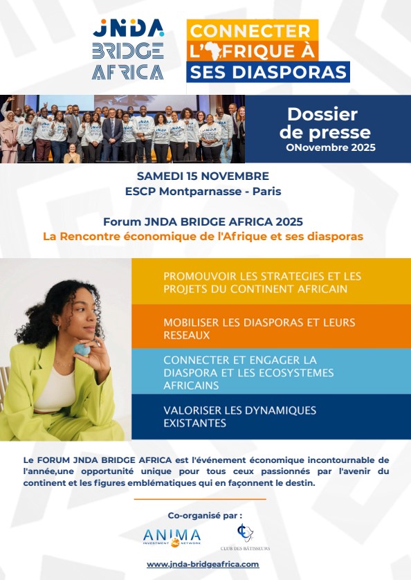 Maglor - Le samedi 15 novembre 2025, Paris sera au cœur du dialogue euro-africain avec la tenue du Forum JNDA Bridge Africa 2025, à l’ESCP Montparnasse. Cette 11ᵉ édition des Journées Nationales des Diasporas et de l’Afrique (JNDA) se veut une rencontre économique majeure entre le continent africain et ses diasporas à travers le monde.