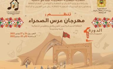 تنظم النقابة المهنية المغربية لمبدعي الأغنية "مهرجان عرس الصحراءبدعم من وزارة الثقافة وبتعاون مع كل من المديريتين…