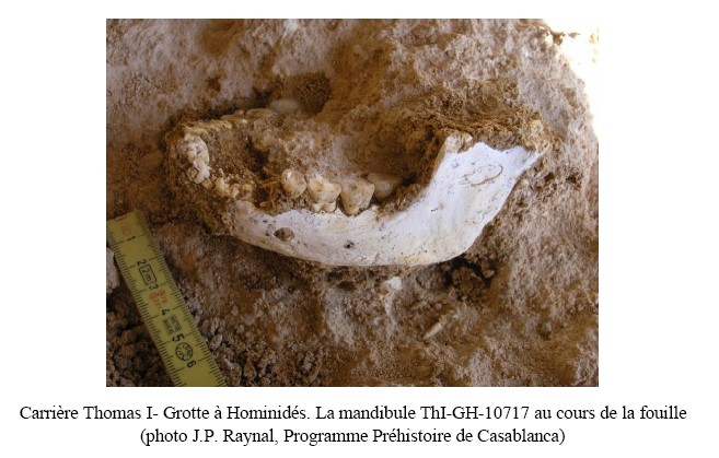 Les vestiges mis au jour dans la Grotte à Hominidés de la carrière Thomas I comprennent plusieurs mandibules humaines, appartenant à deux adultes et un enfant, ainsi que des restes dentaires et post-crâniens. Leur morphologie révèle une combinaison originale de caractères archaïques, rappelant Homo erectus, et de traits plus évolués, annonçant les formes humaines plus récentes.