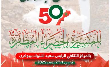 تنظم المديرية الإقليمية للثقافة بتيزنيت و اشتوكة آيت باها احتفالا ثقافيا و فنيا بمناسبة تخليد الذكرى الخمسين للمسيرة الخضراء المظفرة، يومي السبت 1…