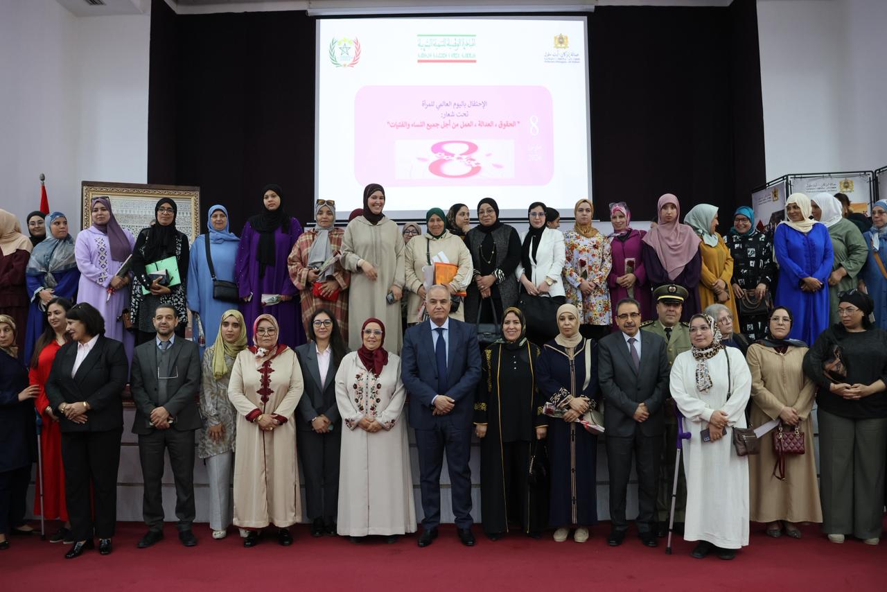 في إطار تخليد اليوم العالمي للمرأة، وتكريس قيم المساواة والإنصاف وتعزيز مكانة المرأة كشريك أساسي في مسار التنمية، ترأس السيد محمد الزهر، عامل عمالة إنزكان أيت ملول، صباح يوم الاثنين 9 مارس 2026 بقاعة الاجتماعات الكبرى بمقر العمالة، فعاليات الحفل السنوي للاحتفاء باليوم الأممي للمرأة، المنظم تحت شعار: “الحقوق، العدالة، العمل، من أجل جميع النساء والفتيات”، وذلك بمبادرة من جمعية الشؤون الاجتماعية لموظفي ومستخدمي عمالة إنزكان أيت ملول، بشراكة مع قسم العمل الاجتماعي بالعمالة.