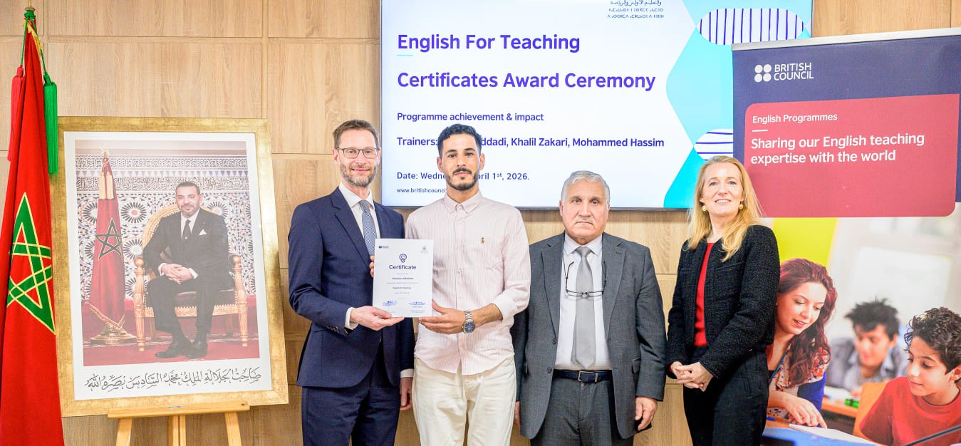 بحضور سعادة سفير المملكة المتحدة بالمغرب، والسيد الكاتب العام لوزارة التربية الوطنية والتعليم الأولي والرياضة، احتفى المجلس الثقافي البريطاني بالمغرب يوم فاتح أبريل الجاري في الرباط بنجاح برنامج التكوين«English for Teaching» (EfT) ( الانجليزية من أجل التدريس ) وقد تم خلال هذا الحفل تكريم أساتذة اللغة الإنجليزية من جهتي الرباط والدار البيضاء، في محطة هامة ضمن الجهود المتواصلة لتعزيز تعليم اللغة الإنجليزية بالمغرب.