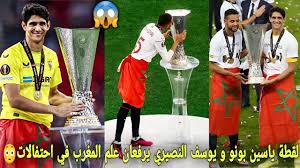 وخطف بونو والنصيري الأنظار لحظة تتويج إشبيلية بلقب “يوروبا ليغ”، حيث تم تداول مجموعة من الصور ومقاطع الفيديو التي ظهرا من خلالها وهما يحملان العلم الوطني المغربي داخل الملعب وخلال أخذ صور تذكارية.