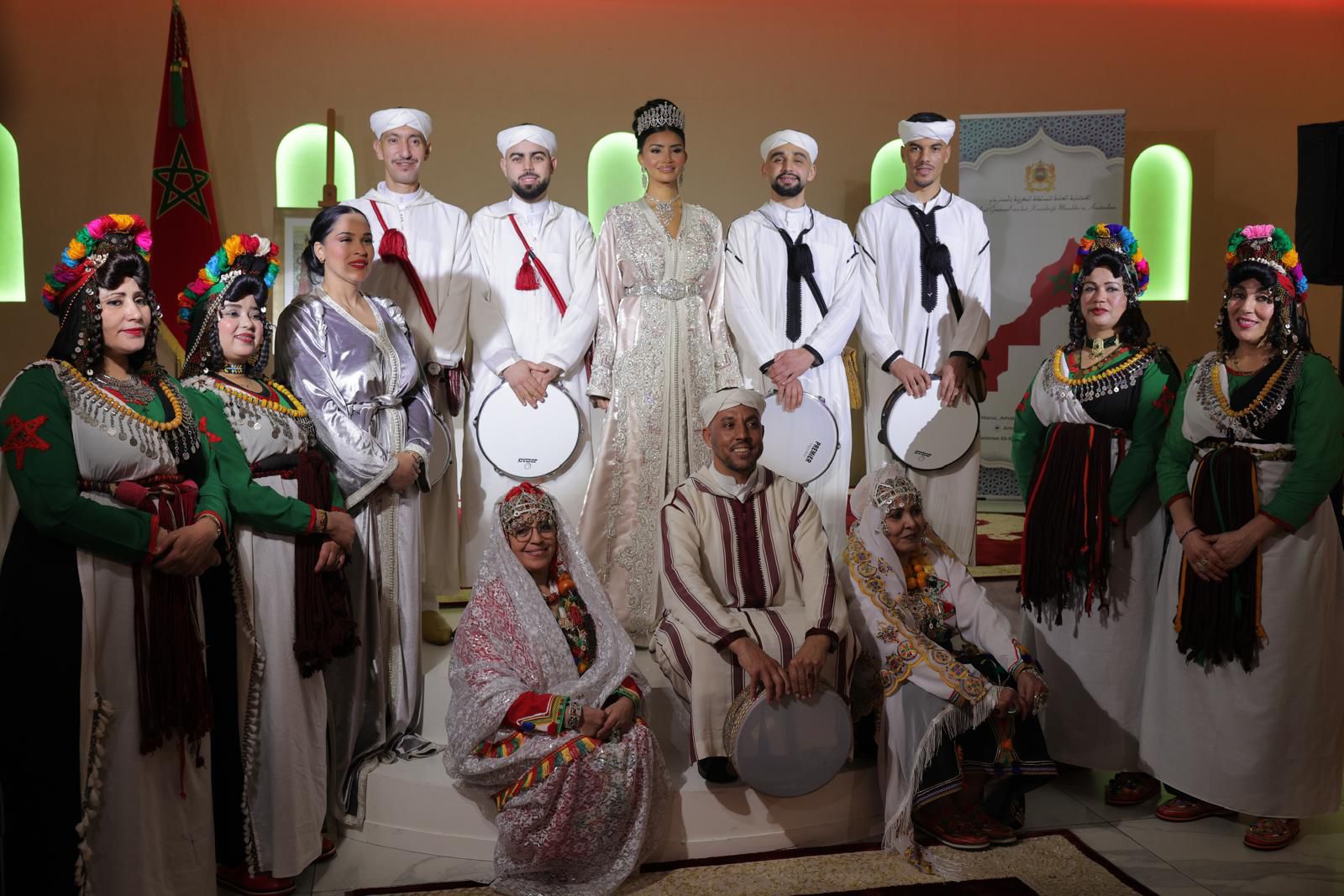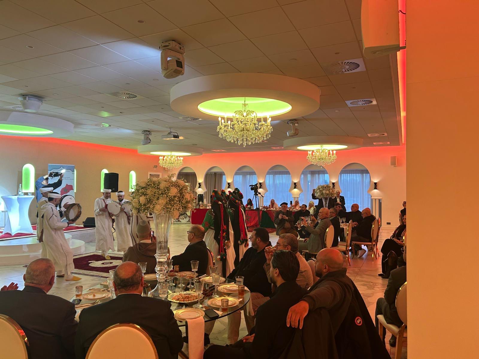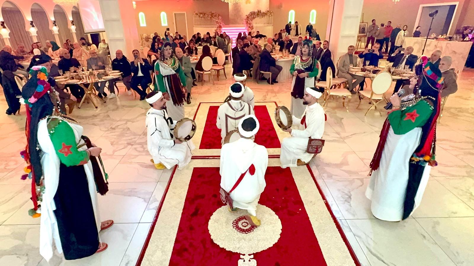 وأُقيم الحفل بقاعة فاخرة، بحضور ما يناهز 180 شخصا من مختلف شرائح المجتمع، من بينهم عدد من المغاربة اليهود، في مشهد يعكس قيم التعايش والانفتاح التي لطالما ميزت المجتمع المغربي، وقد ساهمت ثلاث فرق موسيقية في إضفاء طابع فني راقٍ على هذه المناسبة، من خلال فقرات موسيقية عكست غنى التراث المغربي وتنوع تعبيراته الثقافية.
