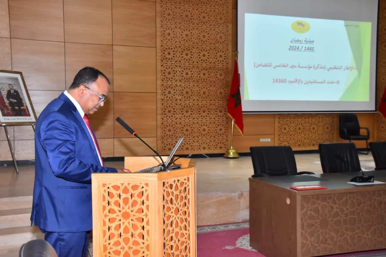 كما تم خلال هذا الاجتماع كذلك دراسة كافة التدابير اللازمة لتأمين نجاح عملية رمضان 1445 ه المنظمة من طرف مؤسسة محمد الخامس للتضامن تحت الرعاية السامية لصاحب الجلالة الملك محمد السادس نصره الله وأيده، حيث دعا السيد العامل في هذا الصدد كافة المتدخلين في هذه العملية الاجتماعية النبيلة إلى ضرورة وضع جميع الترتيبات اللوجيستيكية الضرورية لإيصال هذه المساعدات إلى المستفيدين في ظروف عادية، مع احترام جميع المعايير المحددة في دورية مؤسسة محمد الخامس للتضامن أثناء تحيين لوائح المستفيدين مع السهر على التأكد من استفادة الفئات المعوزة والمستهدفة من هذه المواد. كما يتوجب على اللجن المحلية المشرفة على عملية رمضان ايلاءها ما تستحقه من العناية حتى تمر في أحسن الظروف، وذلك باتخاذ كافة الإجراءات اللازمة لاستقبال هذه المواد وتخزينها في ظروف ملائمة تفاديا لإتلافها، في انتظار توزيعها على المستفيدين في الوقت الذي سيحدد لذلك.