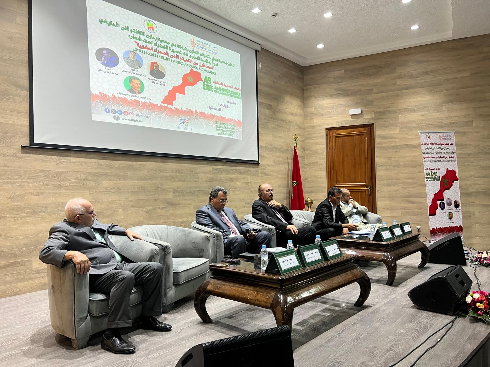 سلط خبراء وأكاديميون الضوء على تطورات ملف الصحراء المغربية، خلال ندوة وطنية نظمتها جمعية "إيليغ للتنمية والتعاون"، يوم أمس السبت 16 نونبر بغرفة التجارة والصناعة والخدمات بأكادير، بمناسبة الذكرى ال 49 للمسيرة الخضراء.