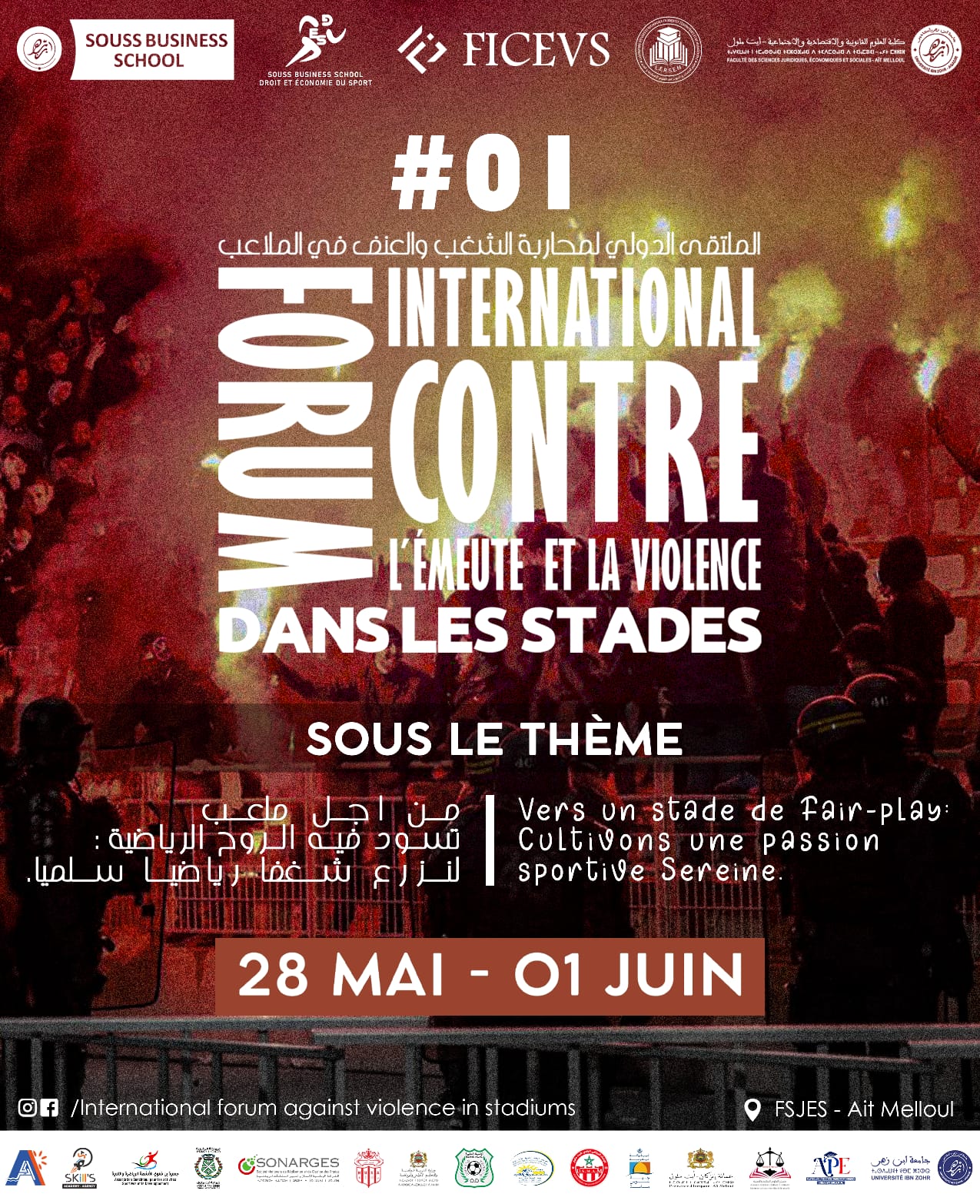 ينعقد بمدينة أكادير خلال الفترة من 28 مايو إلى 1 يونيو 2024 الملتقى الدولي الأول لمناهضة ظاهرة الشغب والعنف في الملاعب، تحت شعار "من أجل ملعب تسود فيه الروح الرياضية: لنزرع شغفًا رياضيًا سلميًا يُمثل هذا الملتقى حدثًا استثنائيًا يُعكس التزامًا عالميًا راسخًا بمعالجة ظاهرة الشغب والعنف في الملاعب، التي باتت تُهدد سلامة وأمن المجتمعات، وتُعيق الاستمتاع بالتجربة الرياضية الحقيقية. ويُتيح الملتقى منصة حوارية دولية تشاركية تجمع نخبة من الخبراء والمتخصصين من مختلف أنحاء العالم، بهدف تبادل الأفكار والخبرات، وتوليد حلول مبتكرة لمكافحة هذه الظاهرة المُقلقة.
