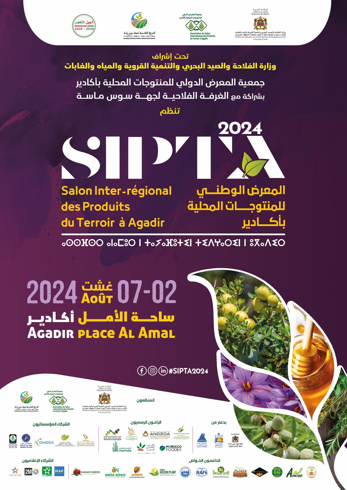 تنظم وزارة الفلاحة والصيد البحري والتنمية القروية والمياه والغابات وجمعية المعرض الدولي للمنتوجات المحلية بأكادير والغرفة الفلاحية لجهة سوس ماسة المعرض الوطني للمنتوجات المحلية بأكادير تحت شعار: "المنتوجات المحلية وتحديات الماء والمناخ"
