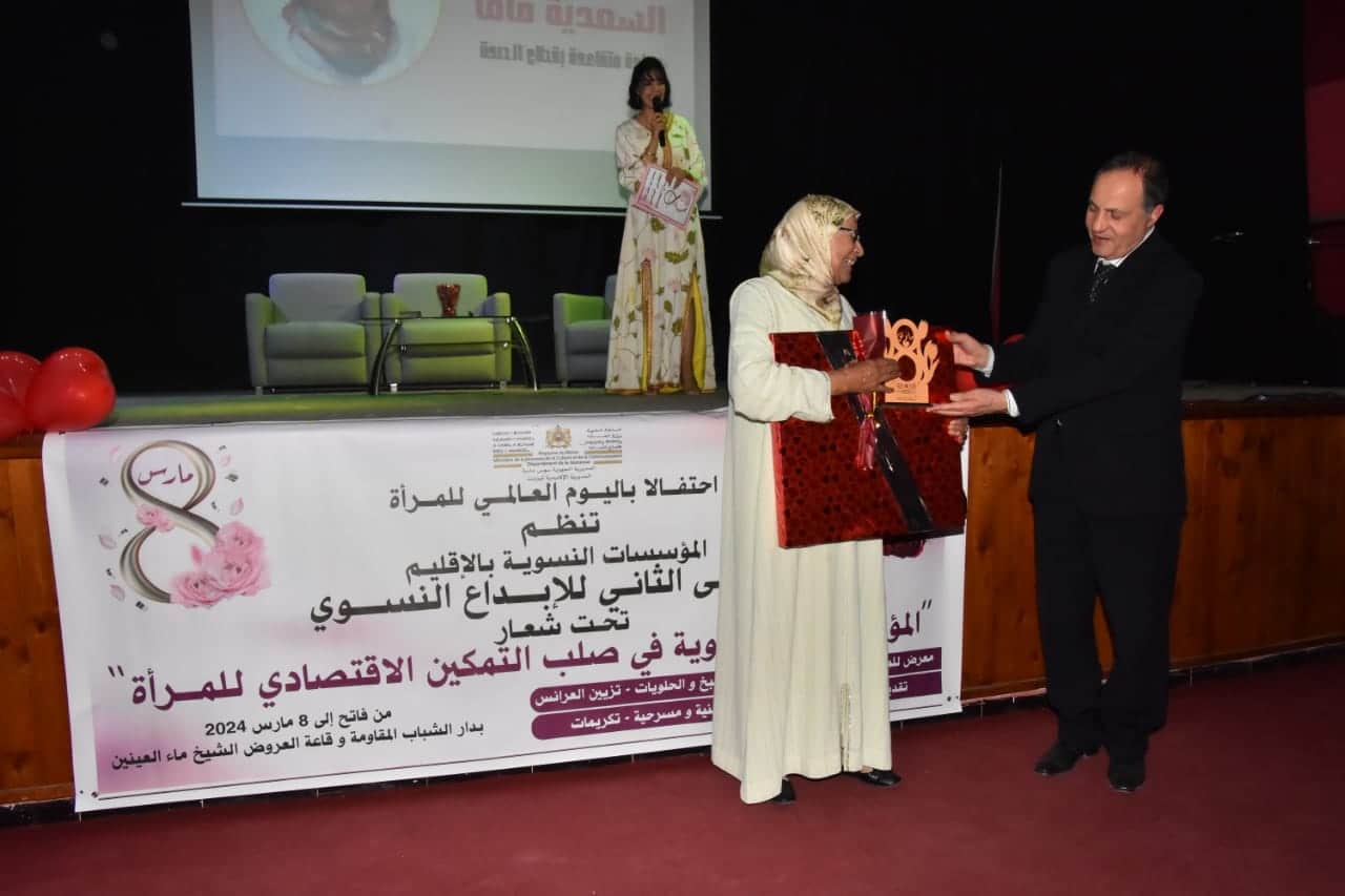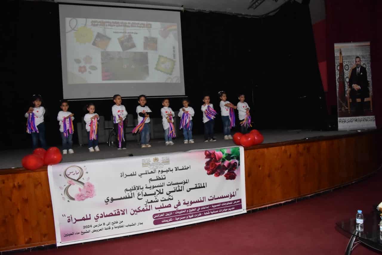 بمناسبة الاحتفال باليوم العالمي للمرأة لسنة 2024، ترأس عامل إقليم تيزنيت , يوم الاربعاء 06 مارس 2024 ،الحفل الإفتتاحي لفعاليات الملتقى الثاني للإبداع النسوي تحت شعار " المؤسسات النسوية في صلب التمكين الاقتصادي للمراة " المنظم من طرف المديرية الإقليمية لقطاع الشباب بتيزنيت من فاتح إلى 08 مارس الجاري.