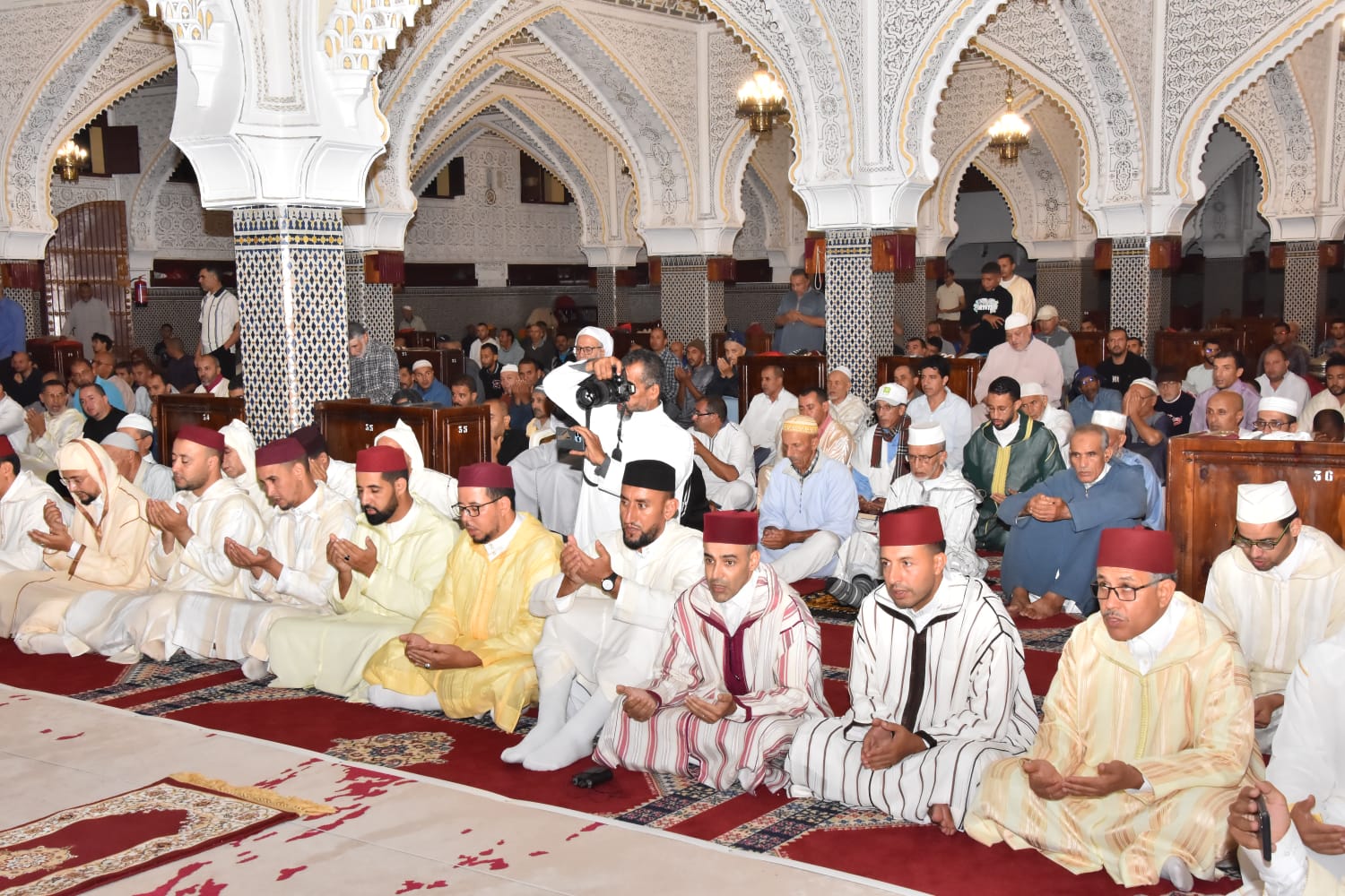وقد تميز الحفل الديني بأجواء روحانية مطبوعة بالتقوى والخشوع، حيث حضره نخبة من الأئمة والفقهاء، إلى جانب حشد غفير من المصلين. وتضمن الاحتفال أذكاراً ربانية وأمداح نبوية تُعبر عن مكانة الرسول محمد صلى الله عليه وسلم. كما تم تلاوة آيات من الذكر الحكيم، مما أضاف للأجواء روحانية خاصة، تعكس عمق هذا الحدث العظيم في قلوب المسلمين.