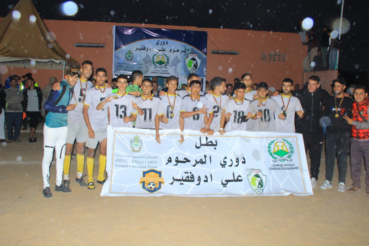 أسدل الستار مساء يوم الثلاثاء 25 يونيو 2024 على النسخة الأولى من دوري المرحوم علي ادوفقير لكرة القدم بالملعب الكبير أكادير نزربان بونعمان المنظم من طرف الجمعية الرياضية شباب أيت براييم بشراكة مع المجلس الجماعي لبونعمان والمجلس الاقليمي لتيزنيت.