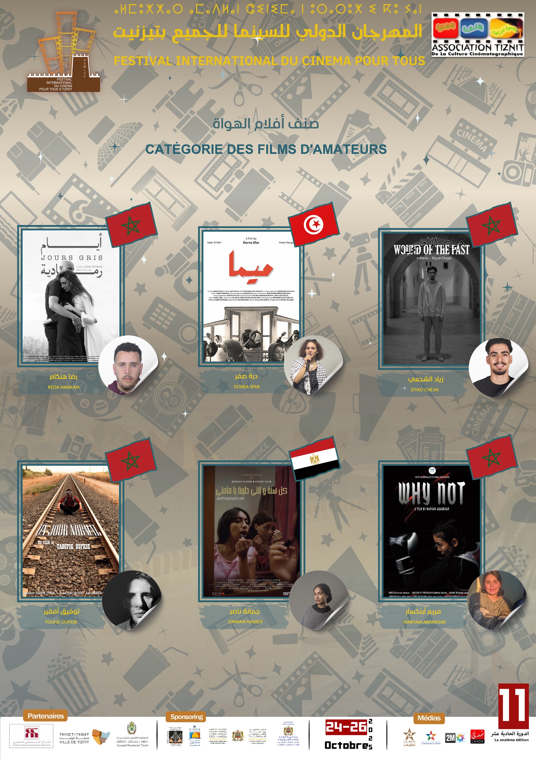 أمام النجاح المتميز الذي حققته الدورات العشر السابقة للمهرجان الدولي للسينما للجميع الذي سبق له أن حضي بالرعاية السامية لصاحب الجلالة الملك محمد السادس نصره الله ، خلال الدورتين الرابعة والخامسة، تيزنيت تحتضن وتسترجع بروح شبابية فعاليات الدورة الحادية عشر للمهرجان الدولي للسينما للجميع من 24 إلى 26 أكتوبر 2025، المنظم من طرف جمعية تيزنيت للثقافة السينمائية و بشراكة مع المجلس الجماعي وبدعم من المركز السينمائي المغربي والمجلس الإقليمي، وستعرف هذه الدورة عرض مجموعة كبيرة وغنية من الأفلام المشاركة من مسابقتين رسميتين صنف أفلام الإحتراف و صنف أفلام الهواة ، كما ستتم استضافة فاعلين سينمائيين، سيؤطرون الورشات التكوينية والندوة بعنوان حدود التفاعل بين السينما و المجتمع وتكريم السيناريست يوسف كرامي و الممثل الأمازيغي محمد بودرقة و الفرنسي روبير ناجلي و ضيوف المهرجان من سلطنة عمان و العراق و فرنسا