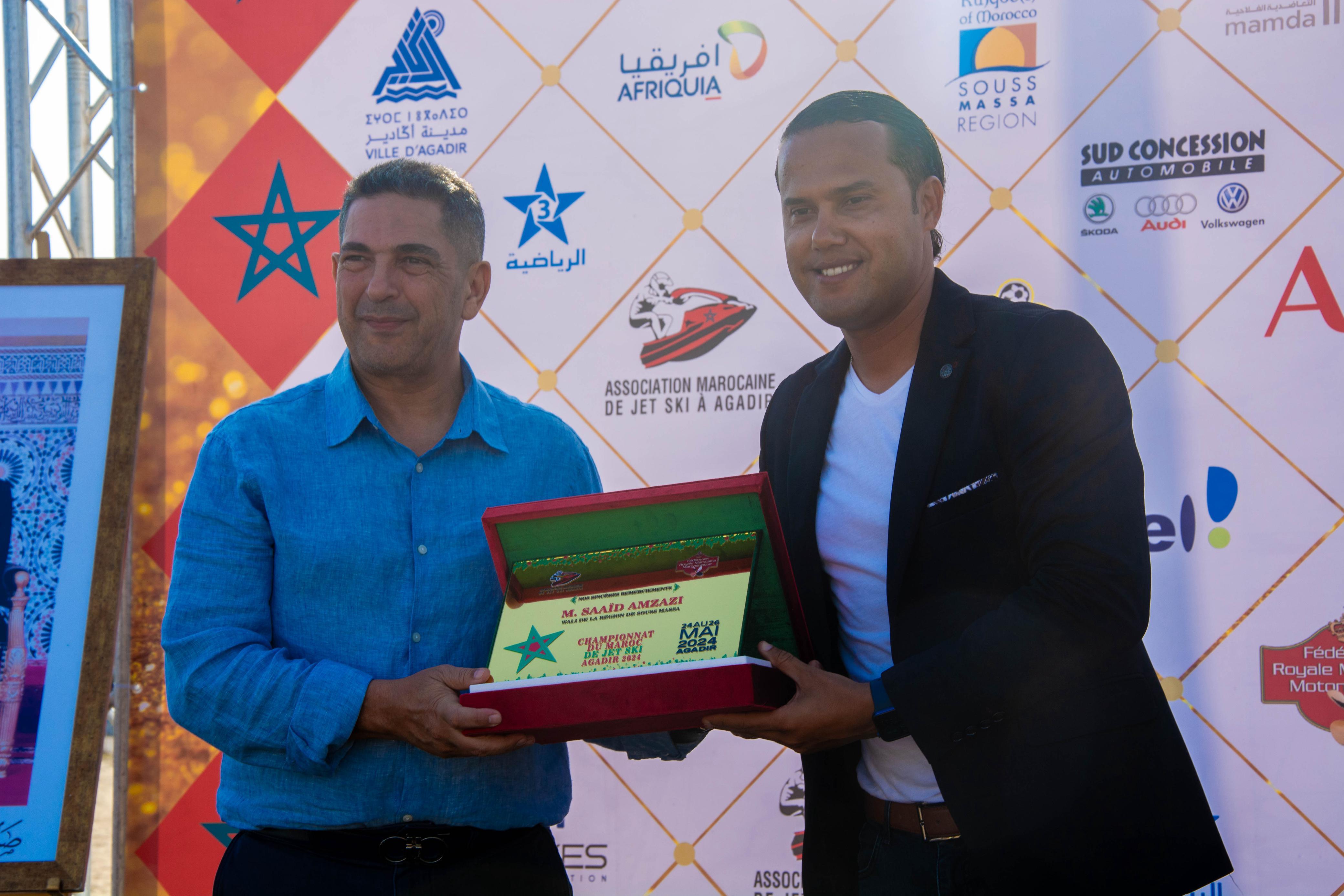 وتتويجا لفعاليات البطولة أشرف السيد سعيد أمزازي والي جهة سوس ماسة عامل عمالة أكادير إداوتنان بمعية مجموعة من الفعاليات والشخصيات التي تمثل مختلف المصالح المعنية بالجهة، على حفل توزيع الجوائز على الفائزين الثلاثة الاوائل من كل فئة في اجواء احتفالية كبيرة.