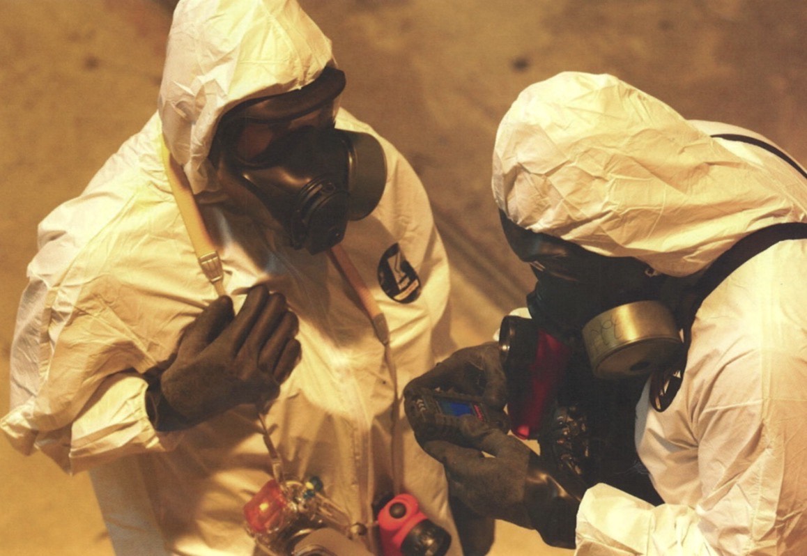 • المعاينة الفنية: يتم من خلالها المسح الشامل لموقع الحادث عن أي آثار يشتبه بها أو يمكن أن تستخدم في التحاليل والمقارنات المعملية الجنائية أو إضافة معلومات تساعد في التحري والبحث الجنائي. ويتم وضع الملابس الوقائية الخاصة والمناسبة عند معاينة موقع مسرح الجريمة الذي يشتبه أنه بحتوي على مواد نووية أو إشعاعية.