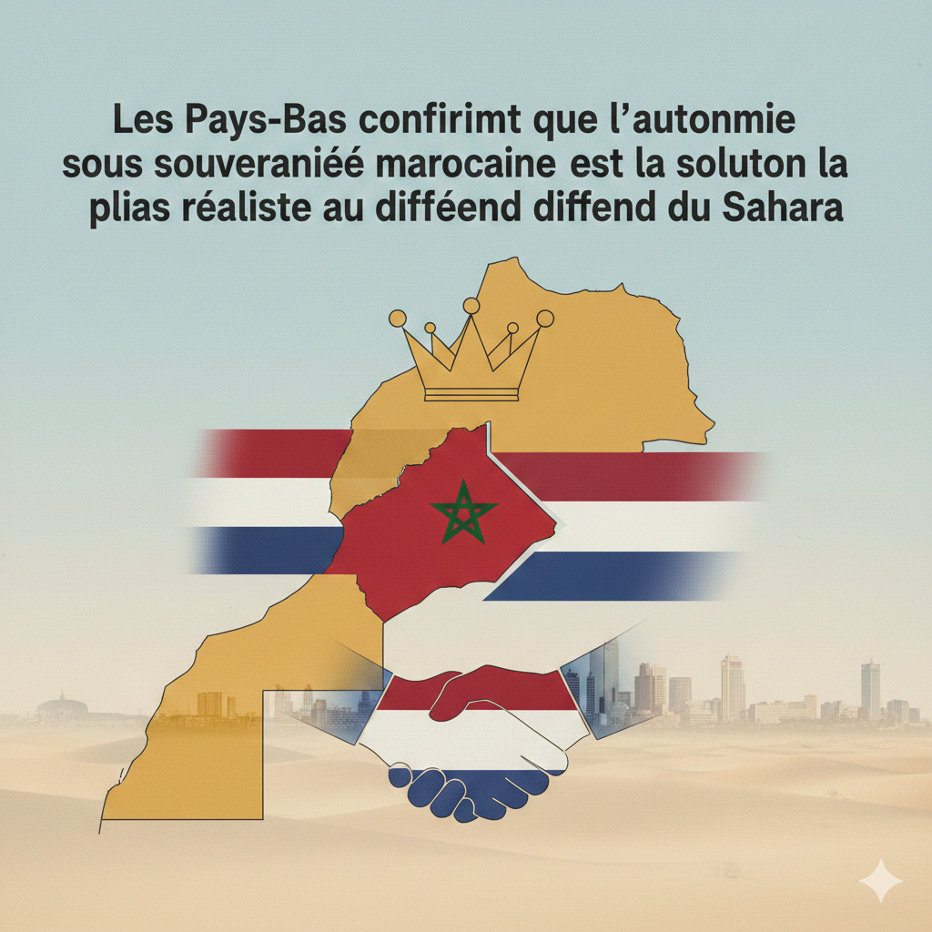 La Haye, 05 décembre 2025 | Maglor - Dans le cadre de la dynamique internationale impulsée par Sa Majesté le Roi Mohammed VI, que Dieu L’assiste, en faveur de la souveraineté du Maroc sur son Sahara et de la promotion du Plan d’autonomie, le Royaume des Pays-Bas a officiellement affirmé qu’« une véritable autonomie sous souveraineté marocaine constitue la solution la plus réaliste pour mettre un terme définitif à ce différend régional ».