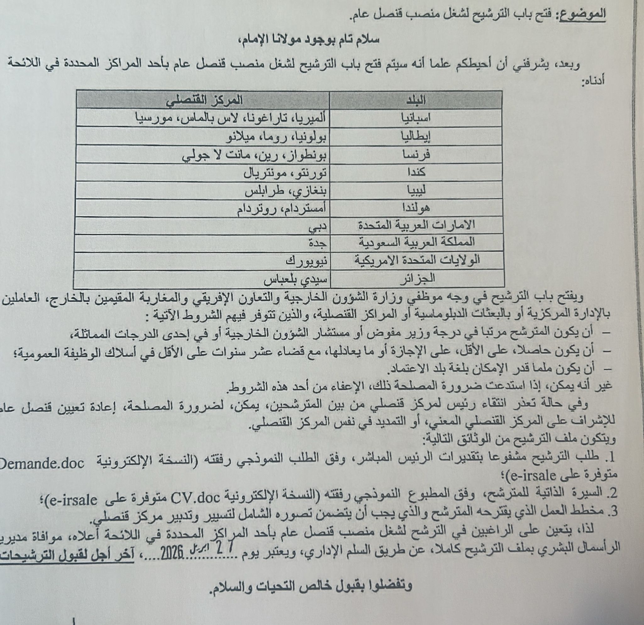 Les postes concernés couvrent des zones géographiques stratégiques en Europe, en Amérique du Nord, ainsi que dans le monde arabe, notamment en Espagne, en Italie, en France, au Canada, aux États-Unis, aux Pays-Bas, en Libye, aux Émirats arabes unis, en Arabie saoudite et en Algérie. Cette diversité reflète l’importance des missions consulaires dans la protection des intérêts nationaux et l’encadrement de la communauté marocaine établie à l’étranger.