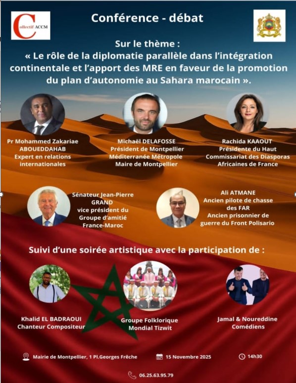 Placée sous le thème : « Le rôle de la diplomatie parallèle dans l’intégration continentale et l’apport des Marocains du monde à la promotion du plan d’autonomie au Sahara marocain », cette rencontre rassemblera un large public de personnalités institutionnelles, universitaires, élus locaux, membres de la communauté marocaine et amis du Maroc.