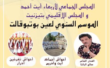 تنظم جمعية أيت مباركي للتعاون والتنمية المستدامة بشراكة مع المجلس الجماعي لأربعاء ايت أحمد والمجلس الإقليمي بتيزنيت، الموسم السنوي لعين بوتبوقالت…