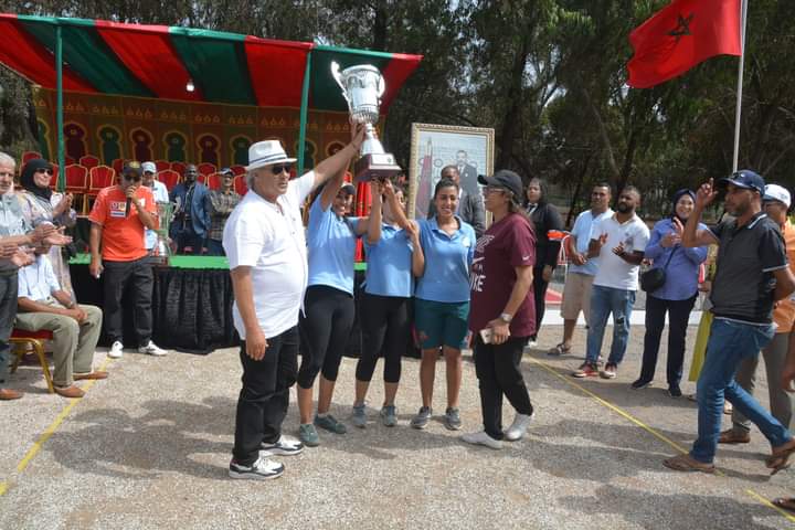 ثلاثية جمعية الوطية للكرة الحديدية بطانطان ( سكينةكورار– راضية كورار– فاطمة حلوان ) ضد الجمعية الرياضيةلبني ملال للكرة الحديدية ( هاجر زاي – كريمة عزيز – سهام رمضان )