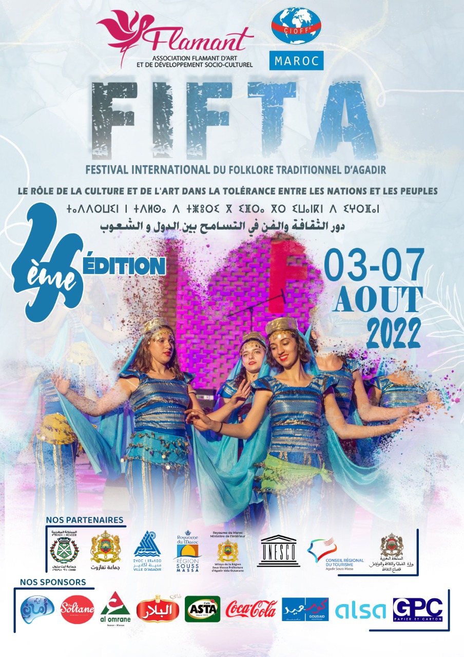 تنظم جمعية فلامون للفن والتنمية السوسيوثقافية ومنظمة CIOFF المغرب في الفترة الممتدة من 03 إلى 07 غشت 2022 الدورة الرابعة للمهرجان الدولي للفلكلور التقليدي تحت شعار " دور الثقافة والفن في التسامح بين الدول و الشعوب " وستعرف دورة هذه السنة حضور إعلاميين ومثقفين وفرق فنية من مختلف ربوع العالم " فرنسا - مدغشقر - الكوت ديفوار - مالي - غينيا " إلى جانب مشاركة فرق تمثل مختلف الألوان الفنية بالمملكة المغربية (أحواش، كناوة، الفن الشعبي والتراث الحساني) وبعد توقف إضطراري بسبب جائجة كورونا، يأتي تنظيم هذا المهرجان بهدف المساهمة في التعريف بالفنون الشعبية والتراث الثقافي والفني المحلي على المستوى الوطني والدولي وتسليط الضوء عليها وخلق فرصة لتبادل التجارب بين الفرق المحلية والدولية، إلى جانب تنشيط الحركة الثقافية والفنية لمختلف مدن جهة سوس ماسة والذي أكد جلالة الملك محمد السادس في الخطاب الذي وجهه بمناسبة الذكرى 44 للمسيرة الخضراء على أنها يجب أن تكون مركزا اقتصاديا، يربط شمال المغرب بجنوبه، من طنجة شمالا، ووجدة شرقا، إلى أقاليمنا الصحراوية وذلك في إطار الجهوية المتقدمة، والتوزيع العادل للثروات بين جميع الجهات.