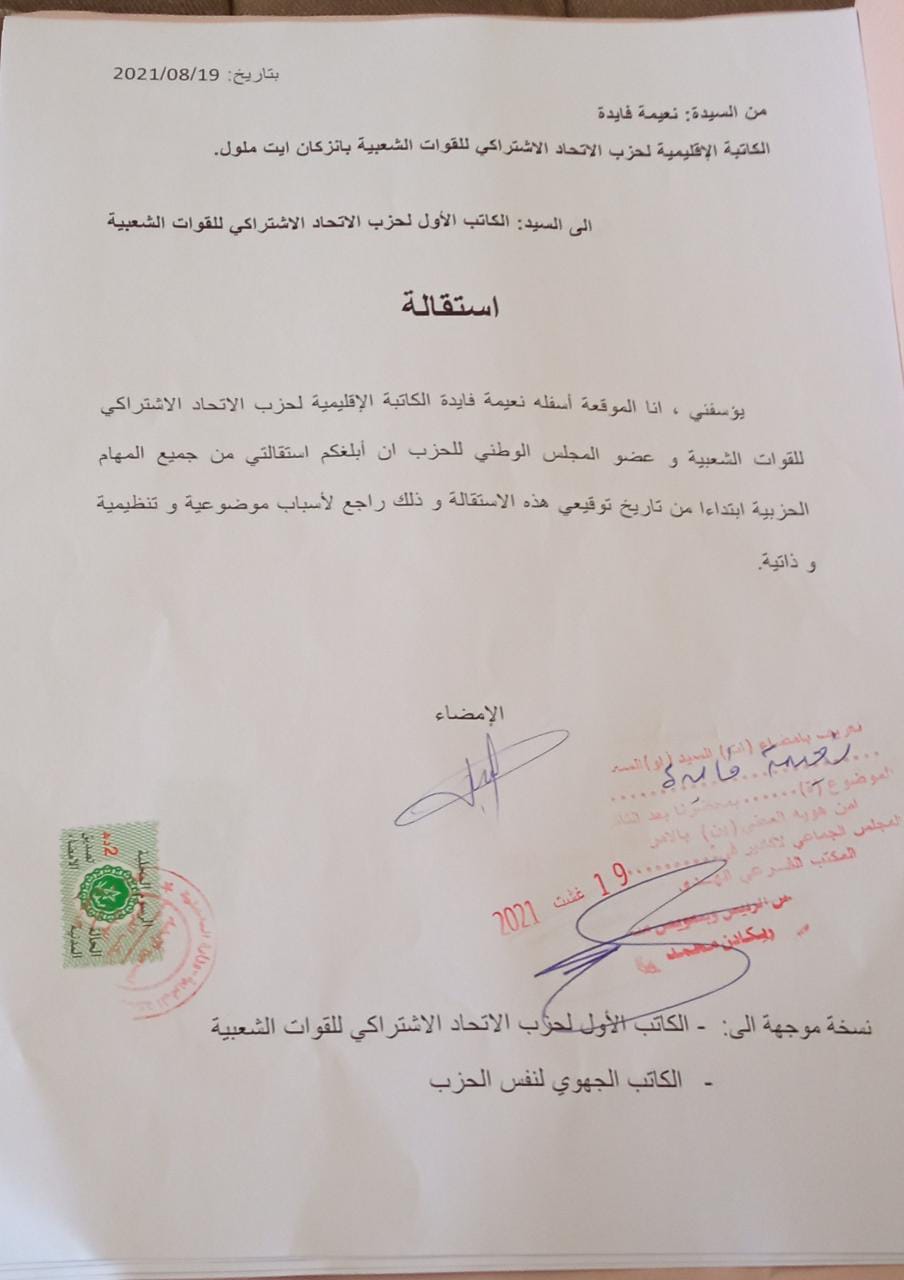 كما ان بعض أعضاء الاخرون بعمالة انزكان أيت ملول سيقدمون استقالاتهم من حزب الوردة