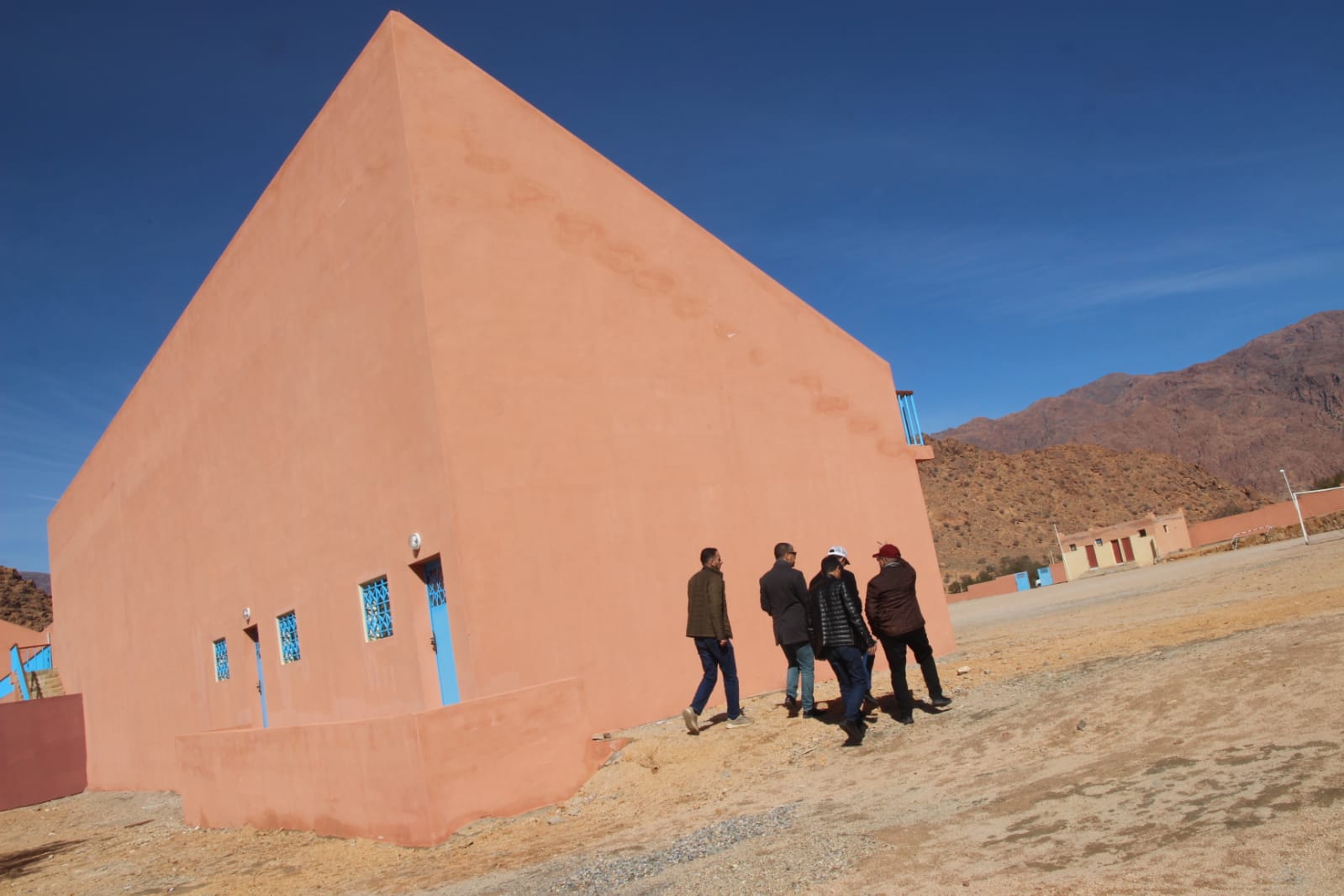 وقد شكلت هذه الزيارة التي حضرها كل من رئيس المجلس الاقليمي، وباشا تافراوت، ورئيس جماعة تافراوت، ونائب رئيس المجلس الاقليمي، (شكلت)مناسبة للاطلاع عن كثب على مستوى تقدم أشغال البناء والتهيئة، حيث بدت ملامح المشروع في انسجام واضح مع الرؤية المعمارية والرياضية المعتمدة، سواء من حيث جودة الإنجاز أو احترام المعايير التقنية المطلوبة.كما تم الوقوف على وثيرة الأشغال، وما تحقق منها، بما يعكس الجدية والانخراط المسؤول لمختلف المتدخلين في إنجاح هذا الورش.
