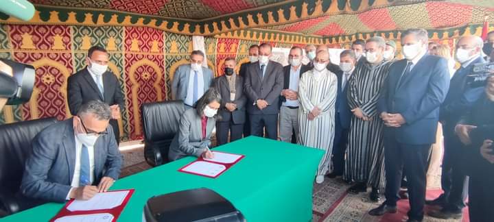 متابعة ياسين هنون : أشرف وفد وزاري مكون من السيد عزيز اخنوش وزير الفلاحة والصيد البحري والتنمية القروية والمياه والغابات، والسيدة نادية فتاح وزيرة السياحة و الصناعة التقليدية و النقل الجوي و الاقتصاد الاجتماعي، رفقة السيد الوالي و السيد العامل و السادة البرلمانيون، بحضور منتخبين ورؤساء المصالح المركزية والاقليمية، وفعاليات مدنية، اليوم الجمعة 09 ابريل، بإقليم تيزنيت ، على تقديم مشروع بناء قرية الفخارين بتيزنيت « Village des potiers»، بمبلغ مالي يقدر بـ 15 مليون درهم، و بمكونات تستجيب لأهداف تثمين سلسلة الفخار بالمدينة والإقليم، وتضم قرية الفخارين، ورشات حرفية للإنتاج ، فضاءات للشرح و للعرض و التسويق.