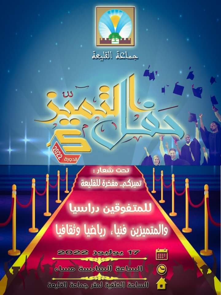 تنظم الجماعة الترابية القليعة ، الأحد 17 يوليوز 2022 بالساحة الخلفية لمقر الجماعة، حفل التميز في نسختها الخامسة ، تحت شعار "تميزكم... مفخرة للقليعة".