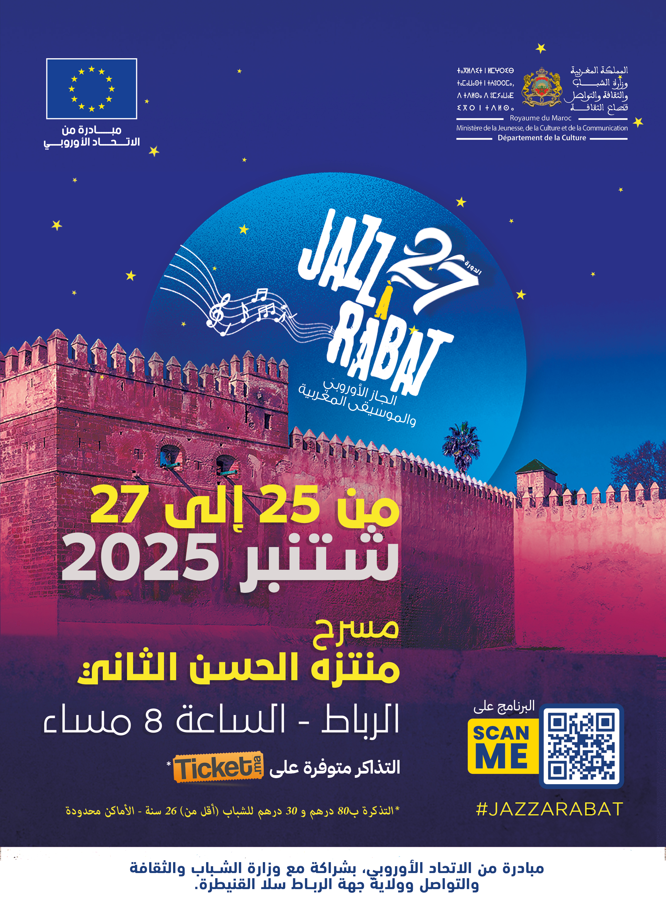 للمزيد من المعلومات حول البرمجة وبيع التذاكر: الدورة 27 لمهرجان الجاز بالرباط