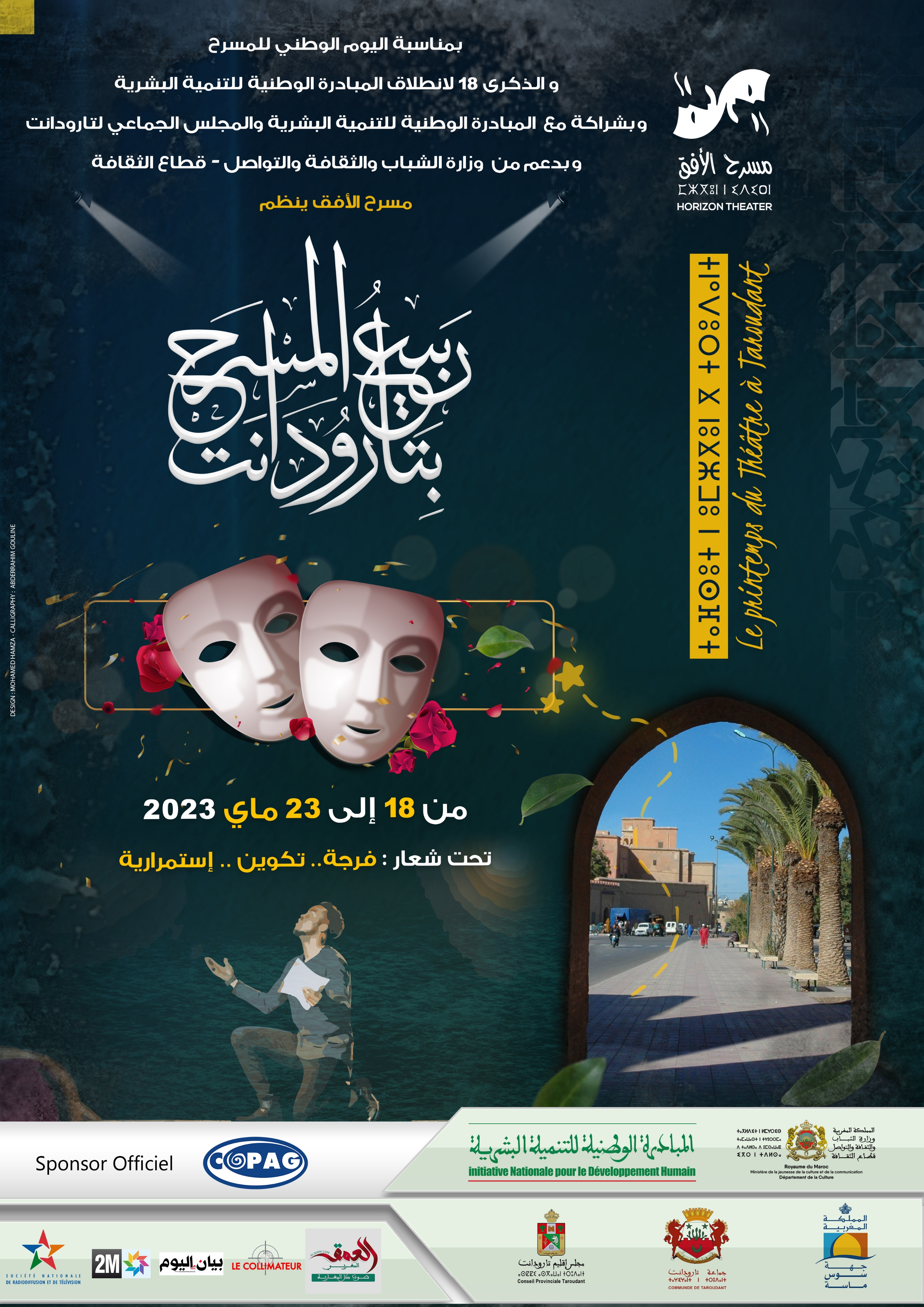 احتفالا باليوم الوطني للمسرح وبالذكرى 18 لانطلاق المبادرة الوطنية للتنمية البشرية وتحت شعار "فرجة، تكوين، استمرارية" تنظم جمعية مسرح الأفق تظاهرة مسرحية برؤية جديدة، تحمل عنوان "ربيع المسرح بتارودانت"، وذلك خلال الفترة الممتدة من 18 إلى 23 ماي 2023.