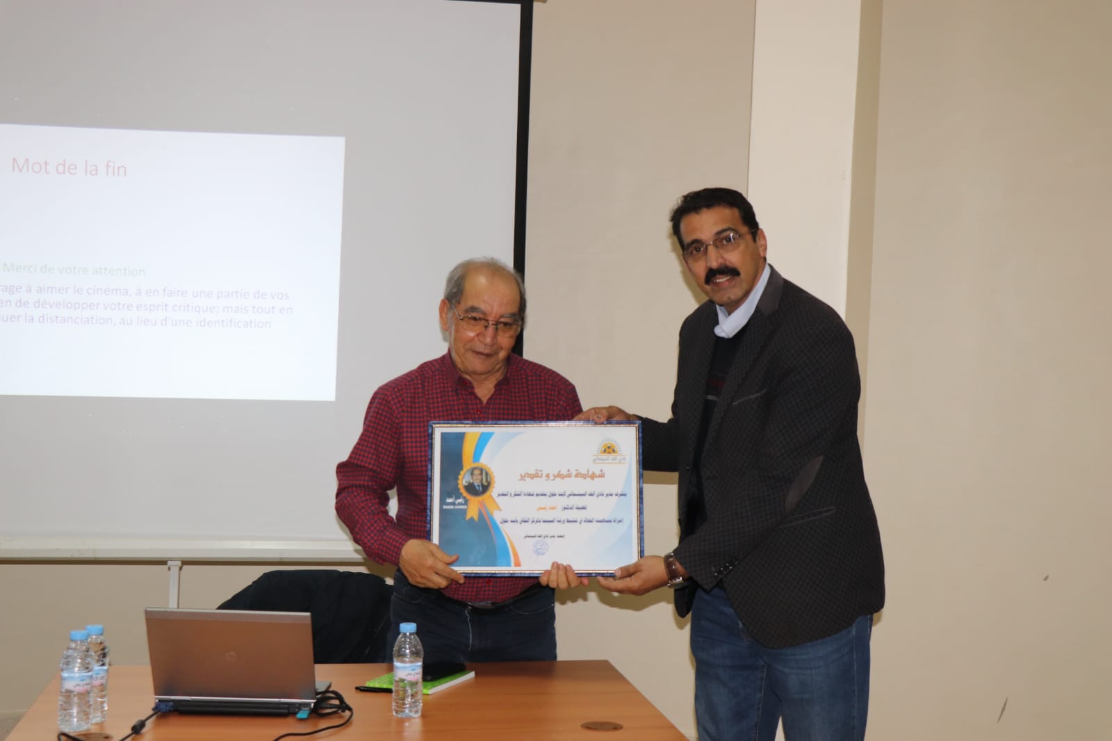 وفي الاخير تم تقديم شهادة شكر وعرفان للدكتور على مساندته للنادي
