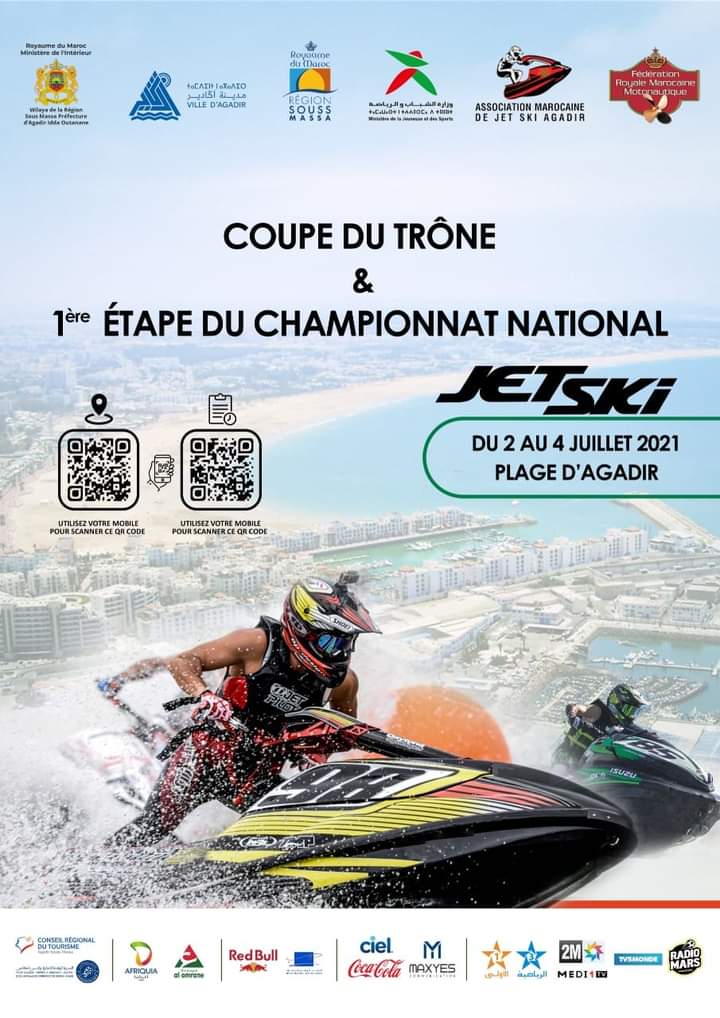 تنظم الجمعية المغربية للجيت سكي باكادير بشراكة مع الجامعة الملكية المغربية للمحركات المائية بمدينة أكادير في الفترة ما بين 2 و 4 يوليوز 2021 المنافسات الخاصة بنهائي كأس العرش 2020 والمرحلة الأولى من البطولة الوطنية للسنة الرياضية 2021 , وذلك بمشاركة متنافسين ينتسبون إلى جل الأندية والجمعيات الرياضية المنضوية تحت لواء الجامعة الملكية يمثلون مختلف الفئات العمرية ( الفتيان والكبار ) .