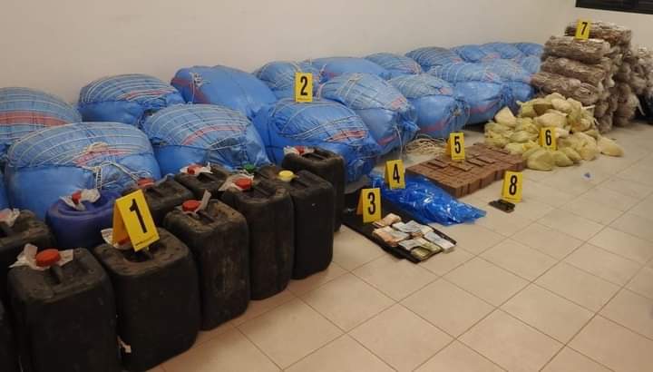 وقد جرى توقيف المشتبه فيه متلبسا بحيازة كمية من مخدر الشيرا بأحد أحياء مدينة أيت ملول، وذلك قبل أن تسفر عملية التفتيش المنجزة بداخل منزلين بنفس الحي السكني عن حجز طن واحد من سنابل مخدر الكيف و22 كيلوغرام و 400 غرام من مخدر الشيرا و 250 كيلوغرام من التبغ المهرب، علاوة على 20 حاوية بداخلها 300 لتر من المحروقات ومبلغ مالي يشتبه في كونه من عائدات هذا النشاط الإجرامي.