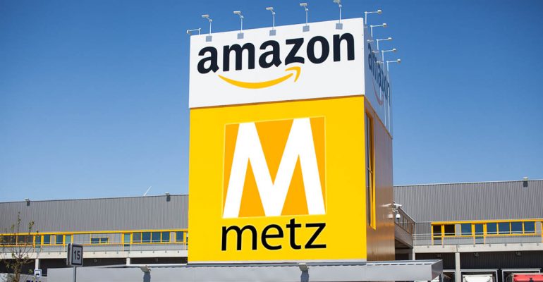 Pour faire tourner cet entrepôt, et pour poursuivre sa croissance hexagonale, Amazon a déjà recruté plus d'une centaine de salariés à Metz. D'ici 3 ans, ils devraient être plus de 1000, en CDI. Le groupe emploie également, pendant les périodes de pic d'activité comme le mois précédant les fêtes de fin d'année, des intérimaires. Ce centre de distribution contribuera aussi à créer des emplois indirects dans la région. Fin 2021, Amazon emploiera au total 14 500 CDI en France. Ce sont ces embauches nombreuses que le groupe fait miroiter aux communes qui acceptent l'implantation – parfois controversée – de ces entrepôts géants sur leur sol.