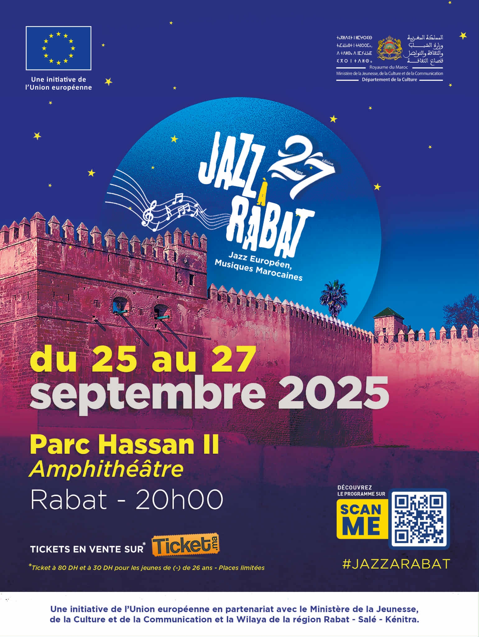 Initiative de l’Union européenne au Maroc, en partenariat avec le Ministère de la Jeunesse, de la Culture et de la Communication et la Wilaya de Rabat-Salé-Kénitra, le festival s’impose comme un carrefour musical entre l’Europe et le Maroc. À travers des rencontres humaines et artistiques inédites, il incarne le dialogue interculturel, mettant en avant les liens solides qui unissent les deux rives de la Méditerranée.